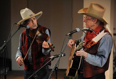 A Wagner-Bovee performance offers a generous dose of authentic cowboy songs, plenty of square dance tunes and other instrumental numbers, country blues, comic and sentimental songs of the south, and perhaps an original or two. The two are likely to also throw in a cowboy poem and some of Pop’s lariat spinning, along with history, folklore and jokelore.